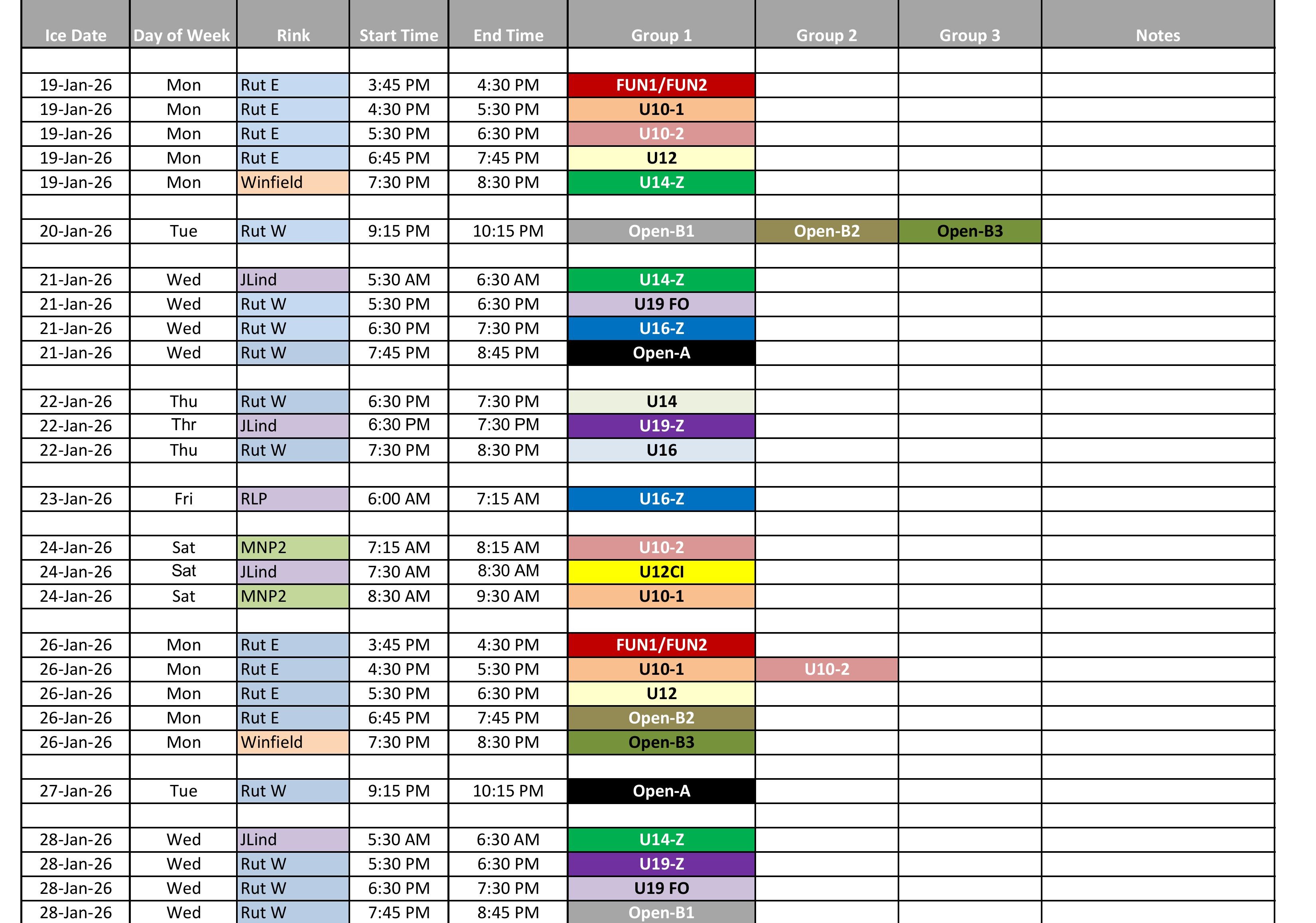 Ice Schedule